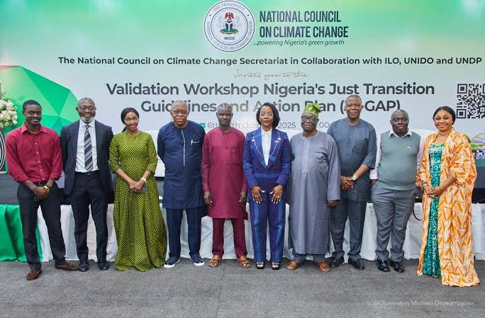 The validation ceremony, held from October 6 to 7, 2025, at the Nigeria Air Force Conference Centre in Abuja, was organised by the National Council on Climate Change (NCCC) with support from the International Labour Organisation (ILO), UNDP, and UNIDO.